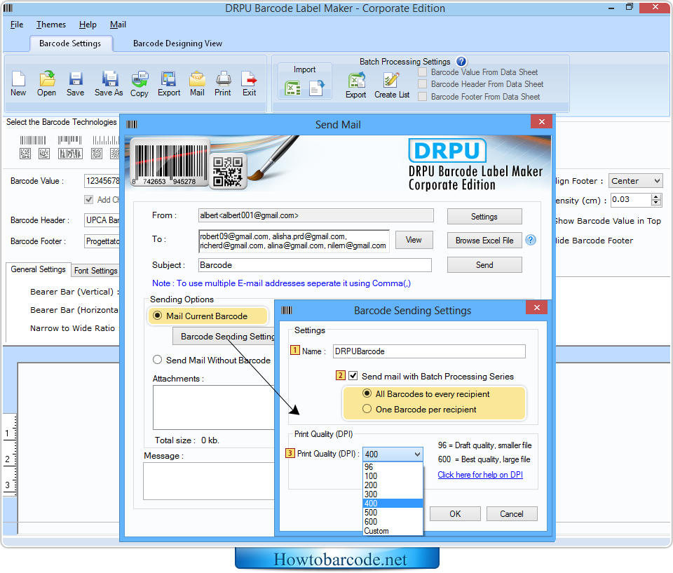 | 2. | To | Per inviare Barcode Aggiungi indirizzo e-mail del destinatario o digitando o importazione di file con "Browse Excel File". |